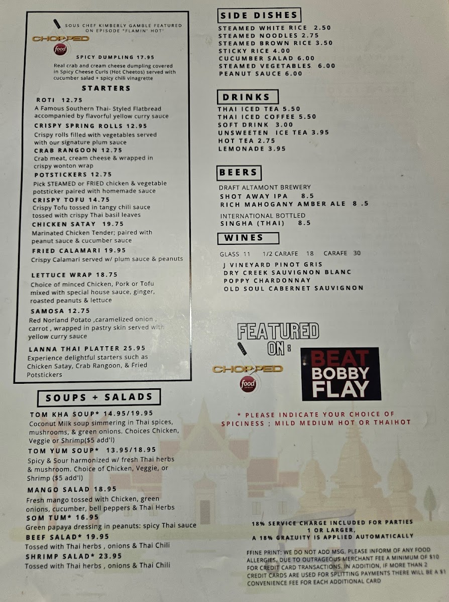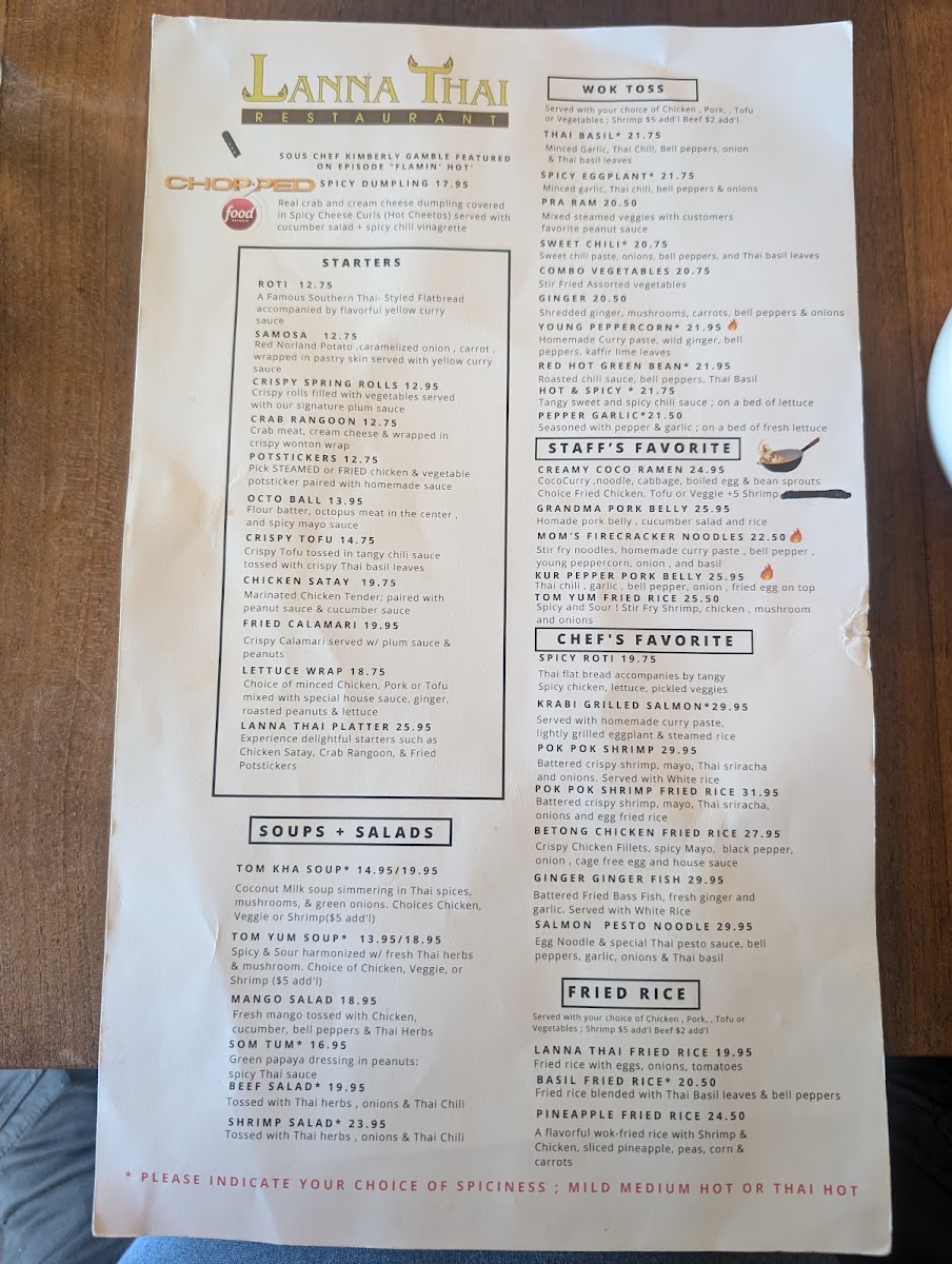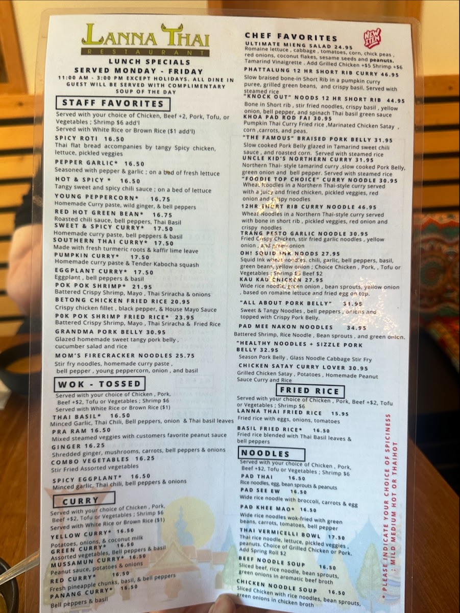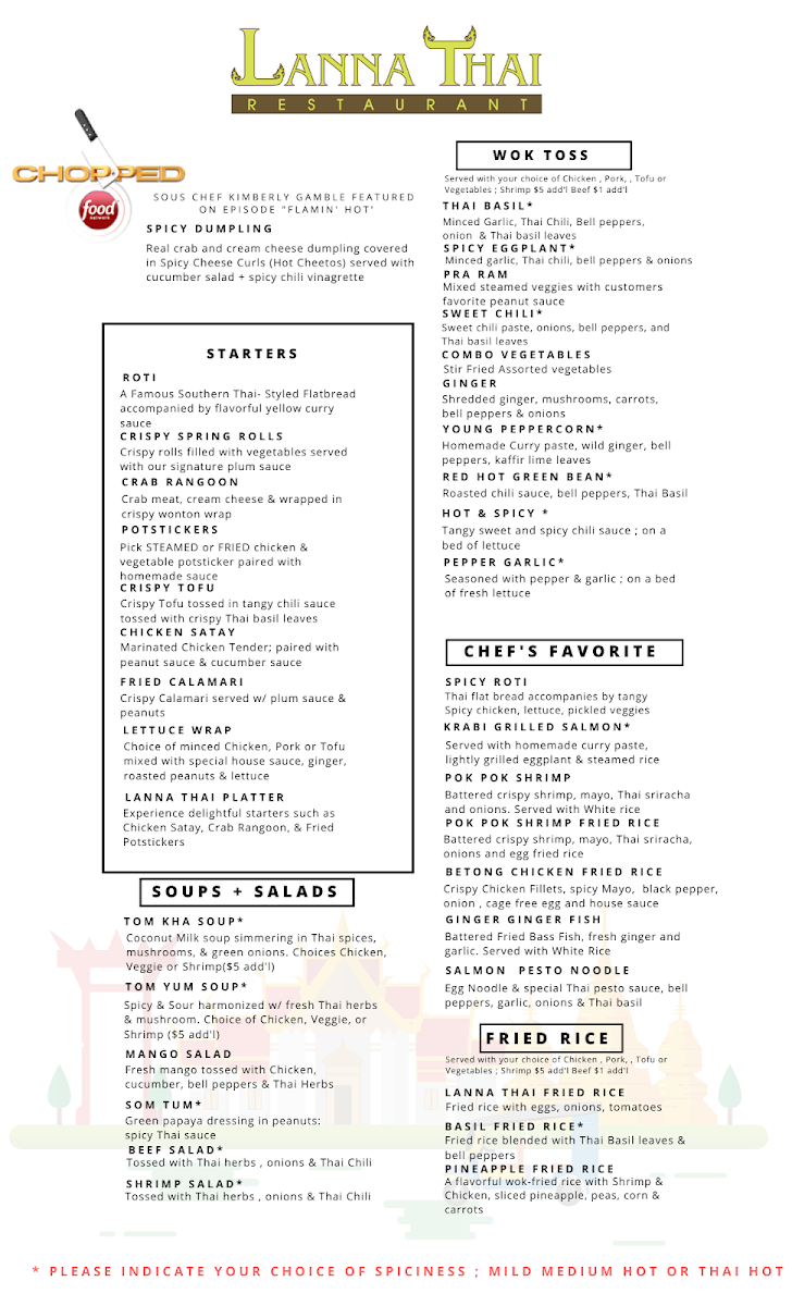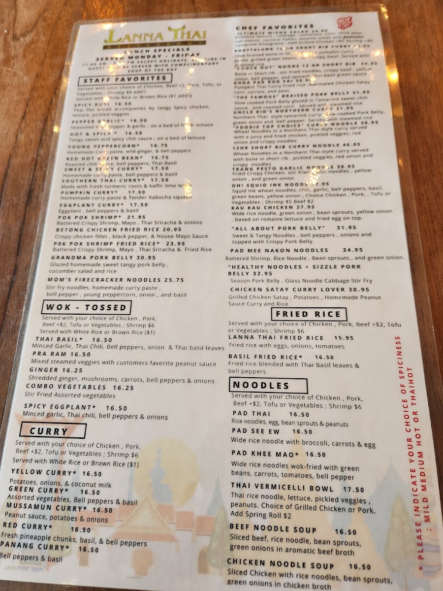 Lanna Thai Restaurant Menu